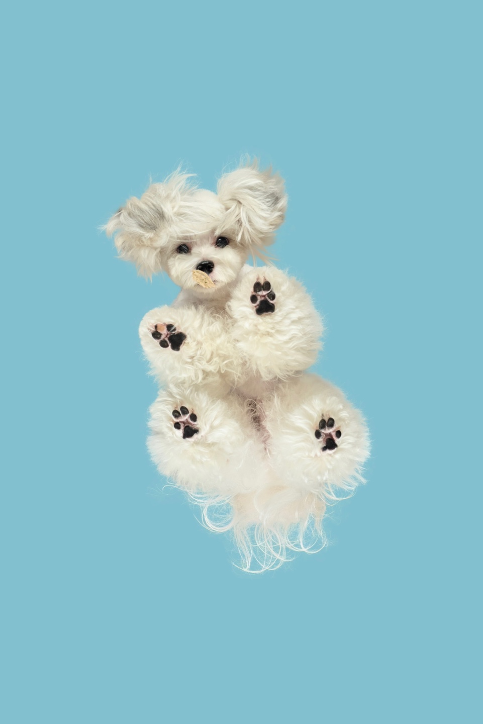 - 앞발 사이에 간식을 두어 시선 유도